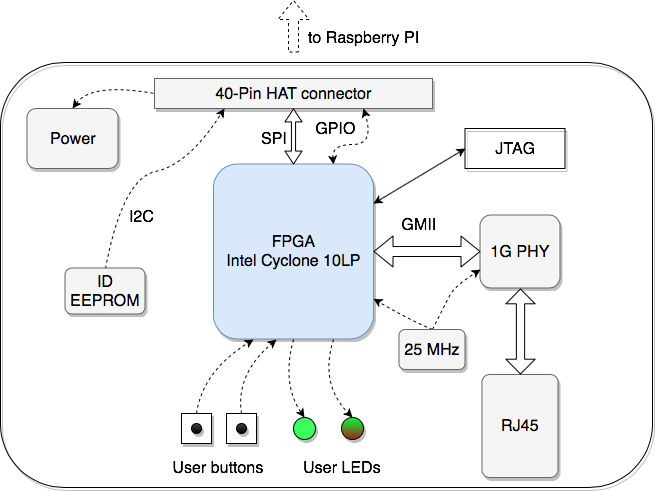 Среди существующих расширений для Raspberry PI (так называемых HAT – Hardware Attached on Top) не так много плат с FPGA, и ни одной с гигабитным Ethernet интерфейсом на борту.